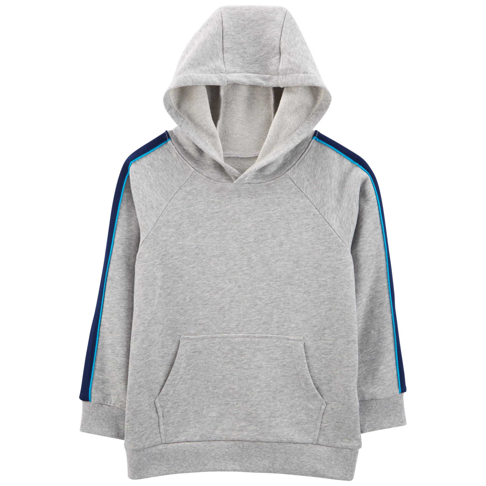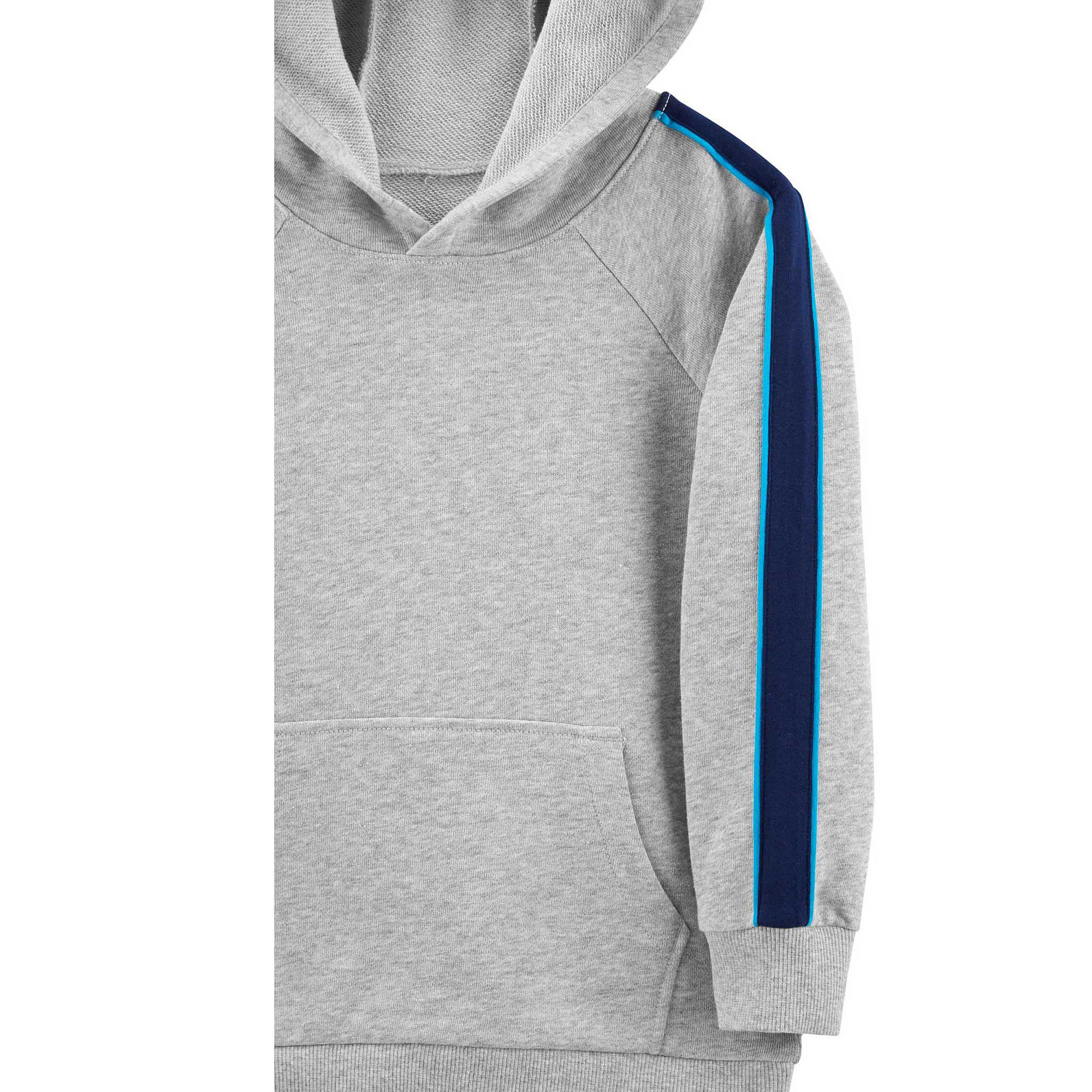 Реглан для хлопчика сірого кольору з капюшоном і контрастними смужками на рукавах. Модель оснащена великою передньою кишенею-кенгуру, що додає зручності та практичності. Завдяки своєму дизайну, реглан є ідеальним вибором для активного відпочинку або щоденного носіння, забезпечуючи тепло та комфорт в прохолодну погоду.