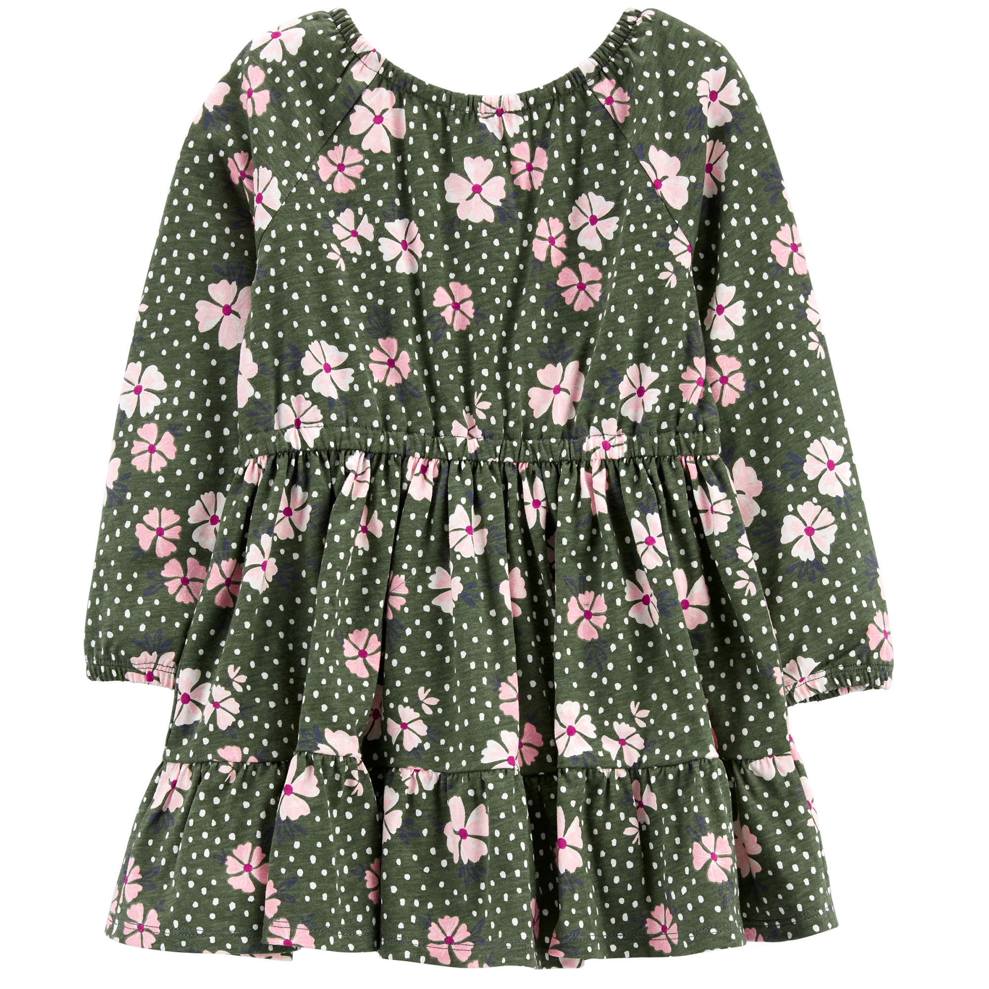 Ця сукня з легкого трикотажу з гарним квітковим принтом підійде у будь-якому випадку. Довгі рукави, звужена талія. Застібка на гудзики позаду. Включає окремі трусики для підгузника для маленьких розмірів. Легкий трикотаж із 100% бавовни. Можна прати в пральній машині.