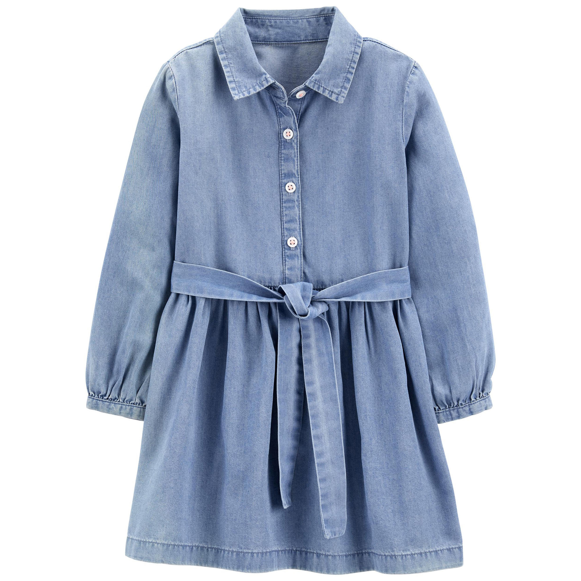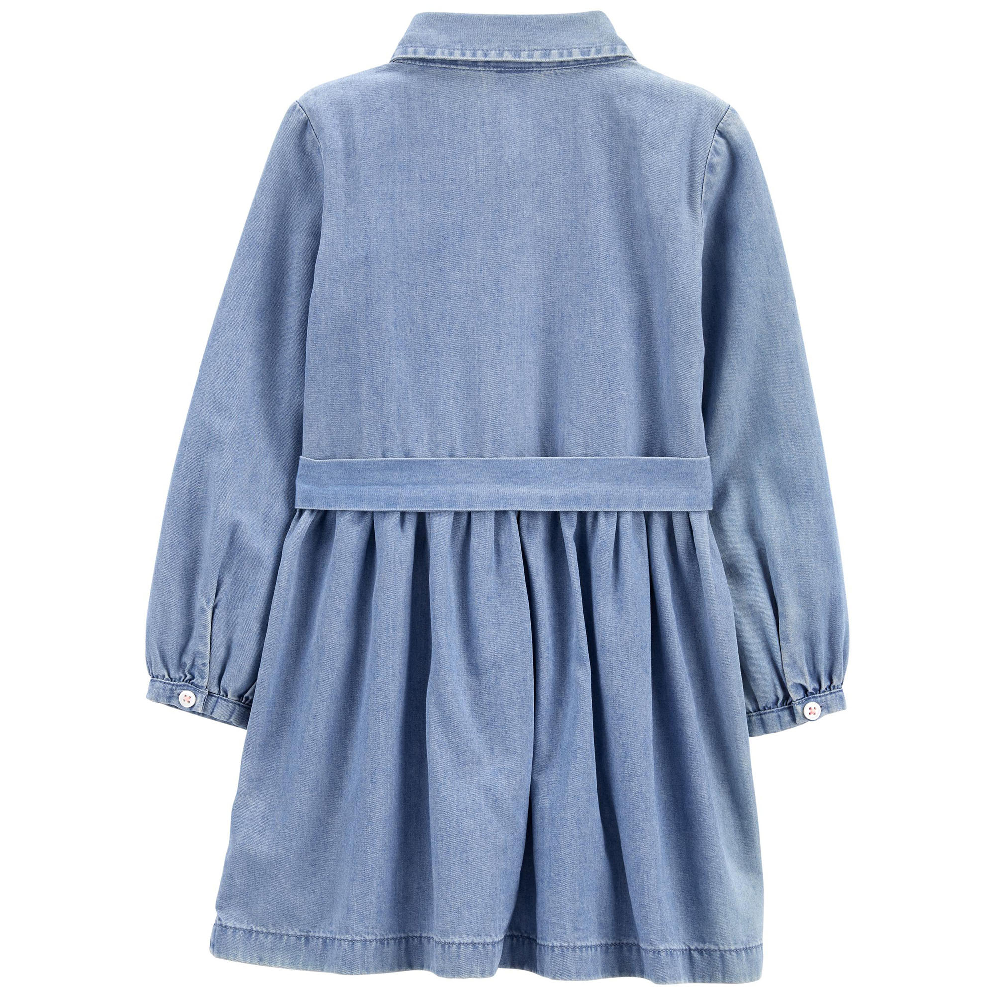 Ця сукня-сорочка із застібкою на гудзики ідеально підійде вашій дівчинці! Довгі рукави, дизайн з гудзиками спереду. Попередньо випрано для м'якості. Склад: 64% бавовни, 36% lyocell indigo denim. Можна прати в пральній машині.